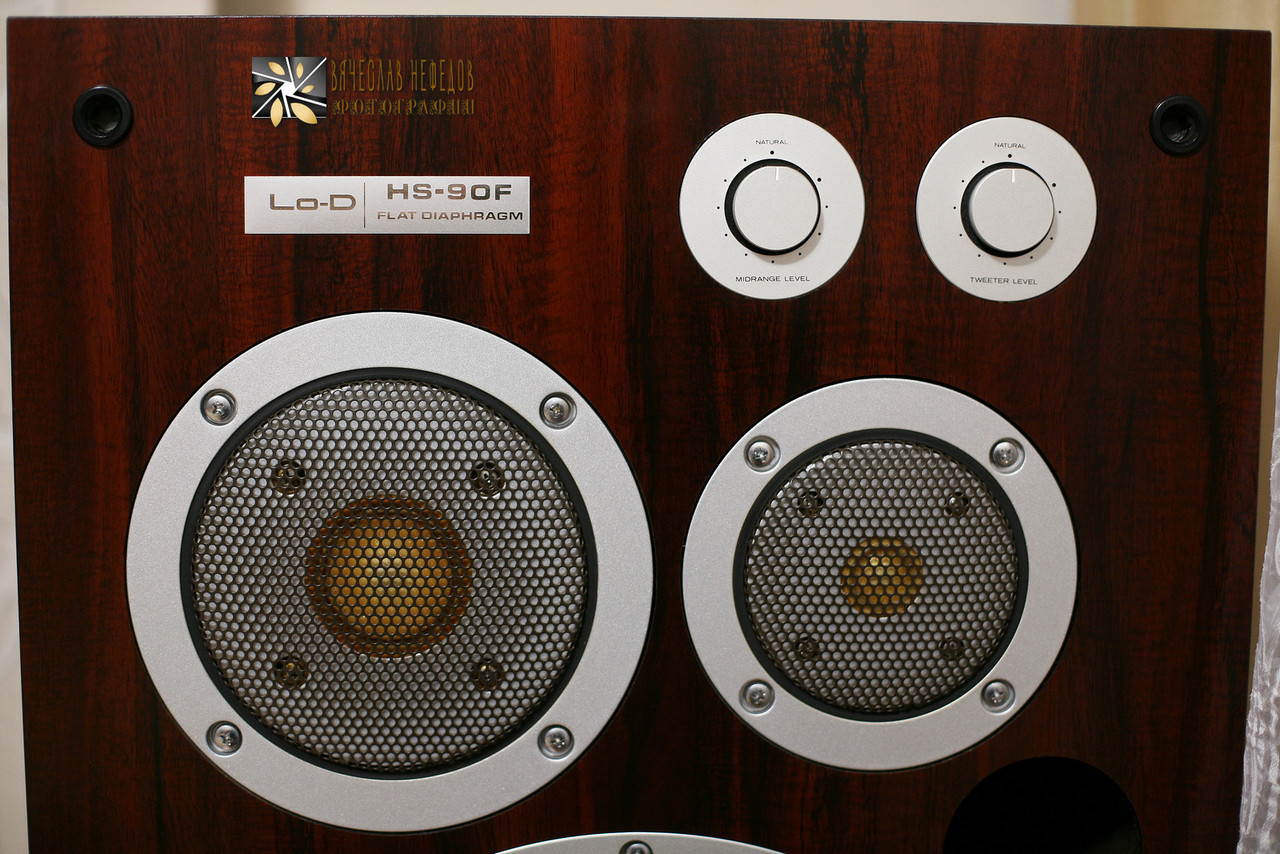 Акустика высокого класса, обладает звуком из другого – «высокого сословия» каталожная стоимость 160 000 y\шт, это дороже чем раскрученные OTTO SX-P1, Sony SS-G7, Onkyo Monitor 2000x, Coral DXEleven, Sony APM-77, Technics SB-10 и др. Колонки относительно небольших размеров, но весят по 45 кг каждая, эдакие свинцовые кубы, что-то подобное делал только Technics , модель SB-1000. Но Lo-D имеют более высокие технологии и совершенный звук! Все диффузоры плоские, но не сотовые, а из сверх легкой (масса ВЧ диффузора почти соответствует массе воздуха) пены, которая затвердевает в специальной камере. Подвесы НЧ и СЧ динамика фирменного «зубастого» профиля изготовлены из бумаги с силиконовой пропиткой (не засыхают как на Diatone и не сыпятся как на Sony APM). В результате, звук бескомпромиссно легкий с воздушной широкомасштабной сценой и основательным невероятно быстрым басом. Внимание! – любителям резинового баса (на подобии Dynaudio, Kef, Focal, Wilson, и других европейских производителей, особенно собранных на скандинавских головках Perless, Vifa) просьба не беспокоить! Здесь бас, может быть отдаленно напоминает быстрые бумажные динамики 60-х годов (на подобии Klangfilm, Electro Voise, Onken), но без бумажного окраса характерного даже хорошим бумажным динамикам. А глубина баса ни как не ограничивается как у «быстрых» бумажных собратьев 50-40 Гц, тут слышны все абсолютно ноты контрабаса или бас гитары, которые раньше вы не слышали! Высокие частоты, так же у Lo-D HS-90F бесподобны – медь рассыпается по комнате взрывной волной соответствующей силе удару барабанщика о тарелку или хай хет! И при этом легко отличить звук тарелок Креш от тарелок Райд! Как эксплуатационный плюс этих колонок – антивандальные сетки на динамиках, которые надежно их защитят не только от шаловливых ручек любопытных детишек и от острых как лезвие когтей домашних животных, но и от подпитых гостей которые, не контролируя свои конечности активно выплясывают под будоражащие звуки Lo-D