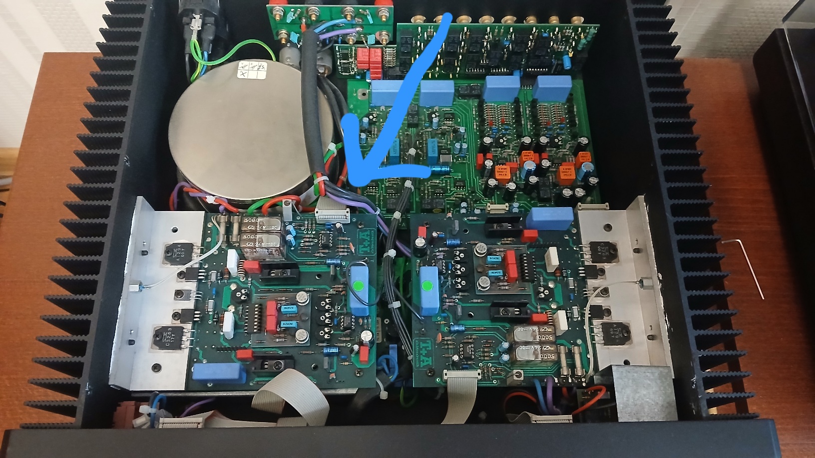Фонокорректора тут два. Пользуюсь пока ММ. Ну тут даже по фото можно полечить - ни разу не говно. То, что Весельчак У определил как конденсаторы в БП (4х2200мкФ), это отдельное питание фонокорректоров. Есть небольшой акцент на НЧ - скорее всего просто нет встроенного фильтра "сабсоник". Звучание, да простят меня технари, совсем чуть чуть смягченное. Очень неплохой фонокор. Хотя, я бы своего Сандерса поставил чуть выше рангом. Не очень удобно, что он не совсем согласован по входной чувствительности с другими входами. Винил звучит тише децибеллов на шесть.