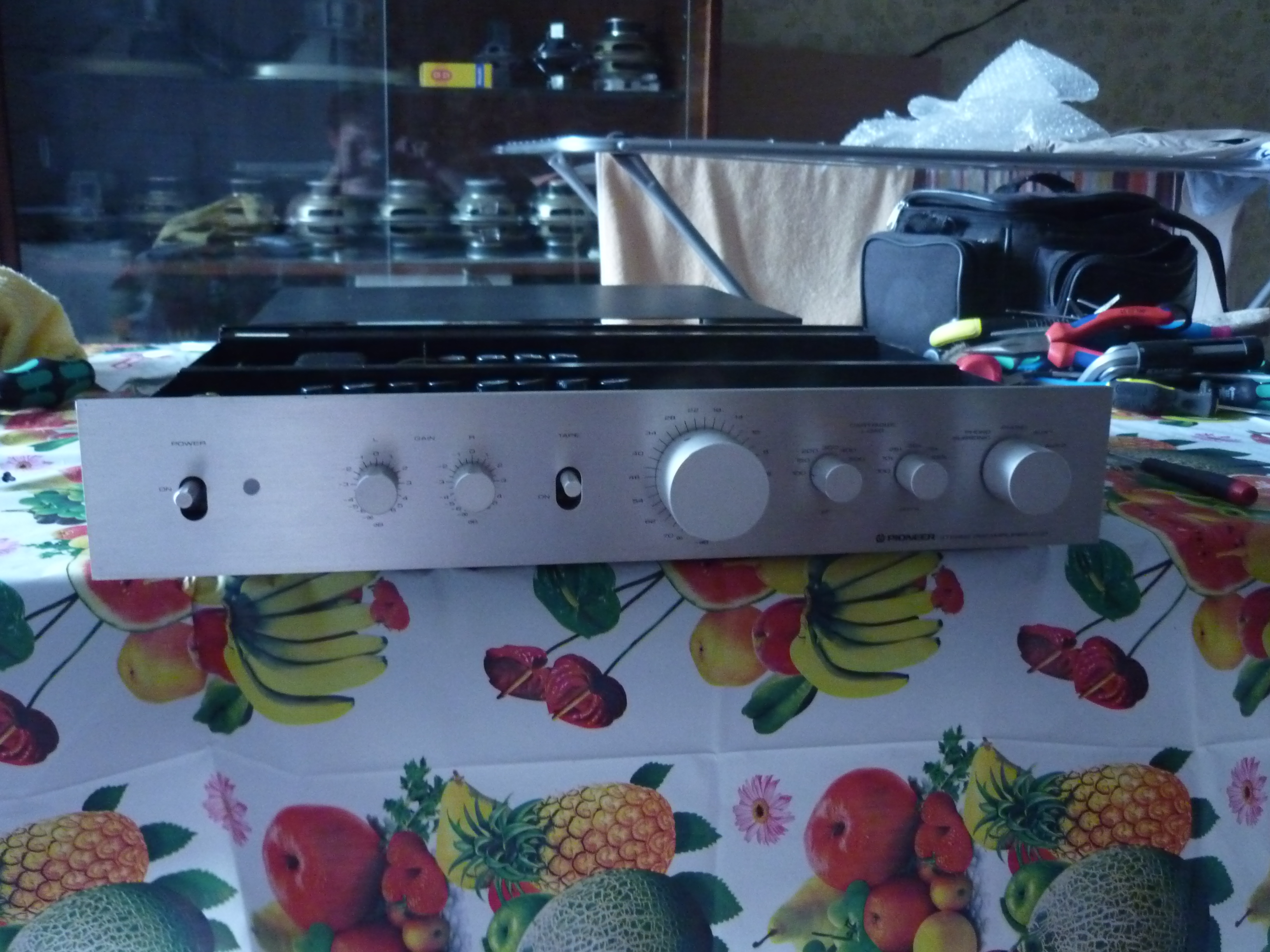 К сожалению не могу сегодня послушать в связке с "родным" мощником Pioneer M-22 потому как мощный понижающий трансформатор для него находится в стадии оформления в цивильный макентош.
