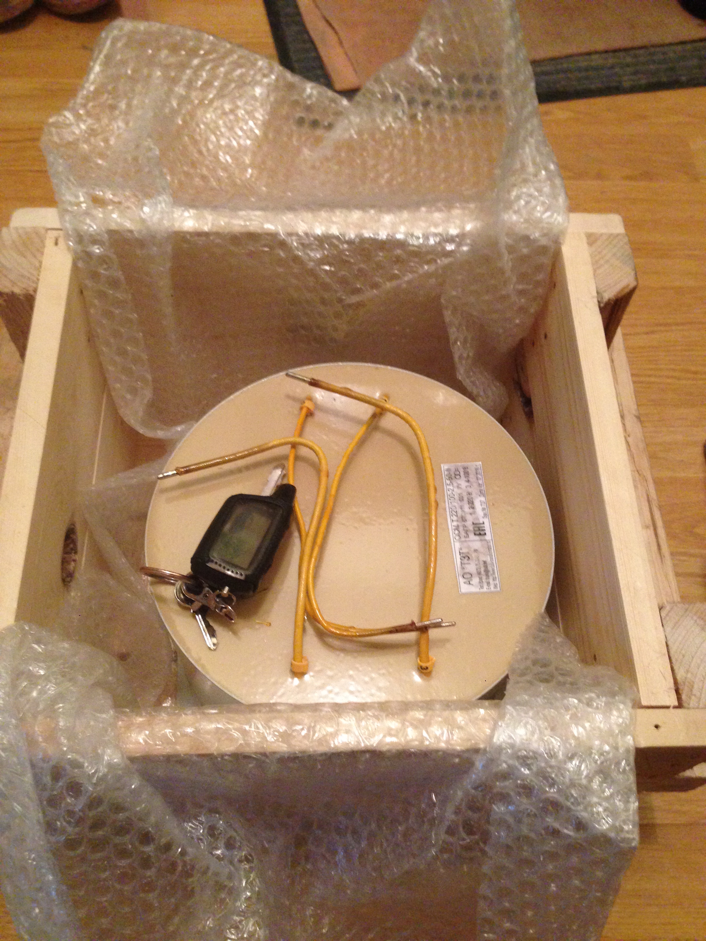 3. После некоторого времени скитания по бескрайним просторам паутины и мытарств был найден третий способ - изготовление на заказ требуемого трансформатора в России. У нас есть Тульский завод трансформаторов, руководство которого оперативно отработало, были сняты все вопросы по изготовлению, конструктиву и доставке в самые короткие сроки. Через месяц я уже встретил тор на 2,5 кВт в пылевлагозащищенном исполнении, залитый компаундом, с креплением, с выводами, пакетом документации, сертификатами и пр. Цена была приемлема более чем. Вот таким я забрал его из транспортной.