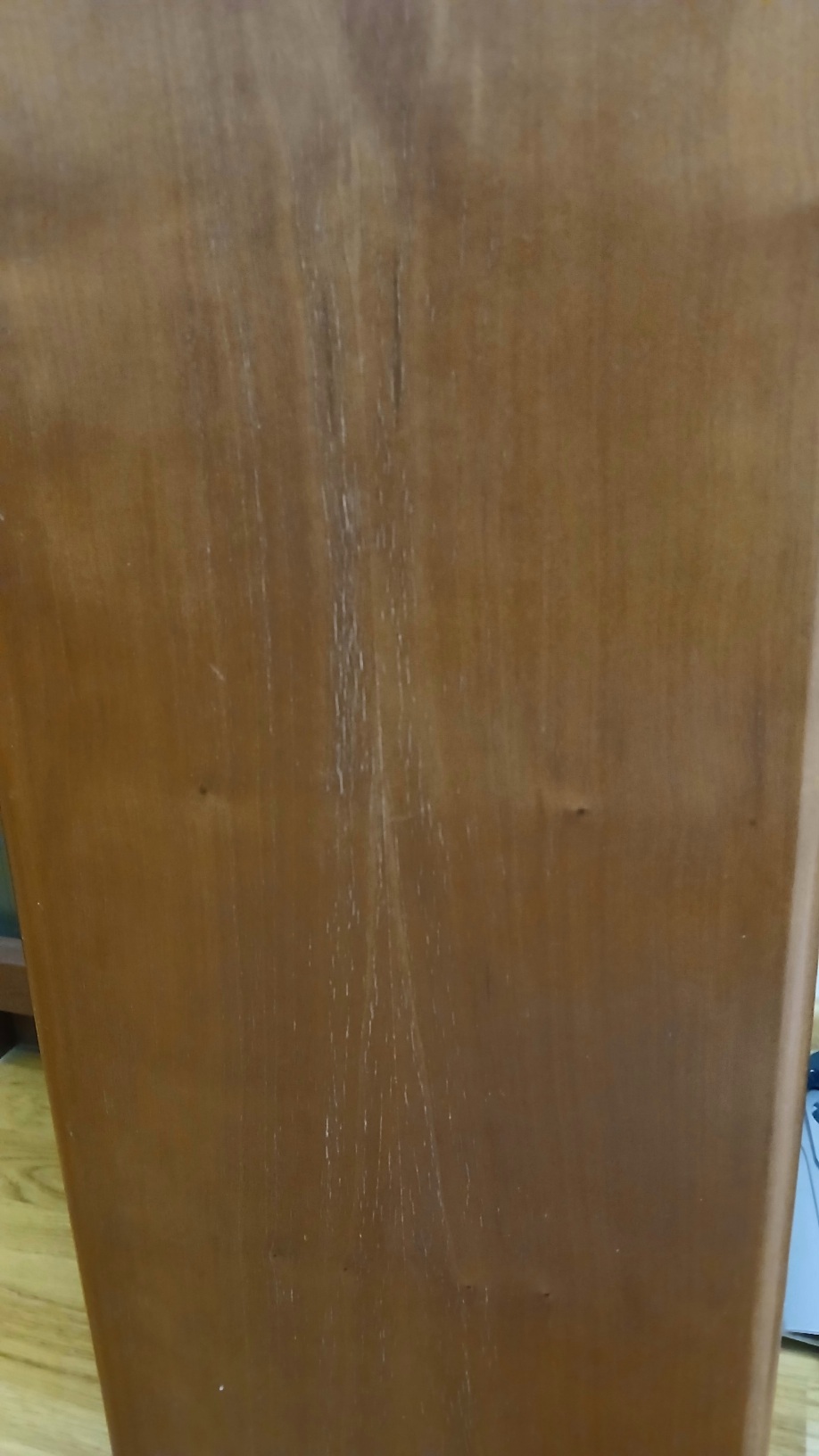 Давно меня беспокоила одна вещь – лакировка. Она слабенькая, с передачей структуры древесины. Но за 30 лет, плюс возможные воздействия УФ, покрылась мелкой сетью морщин-трещинок. С метра их не видно, но вблизи заметно. Камера их немного гипертрофировала, но тем не менее