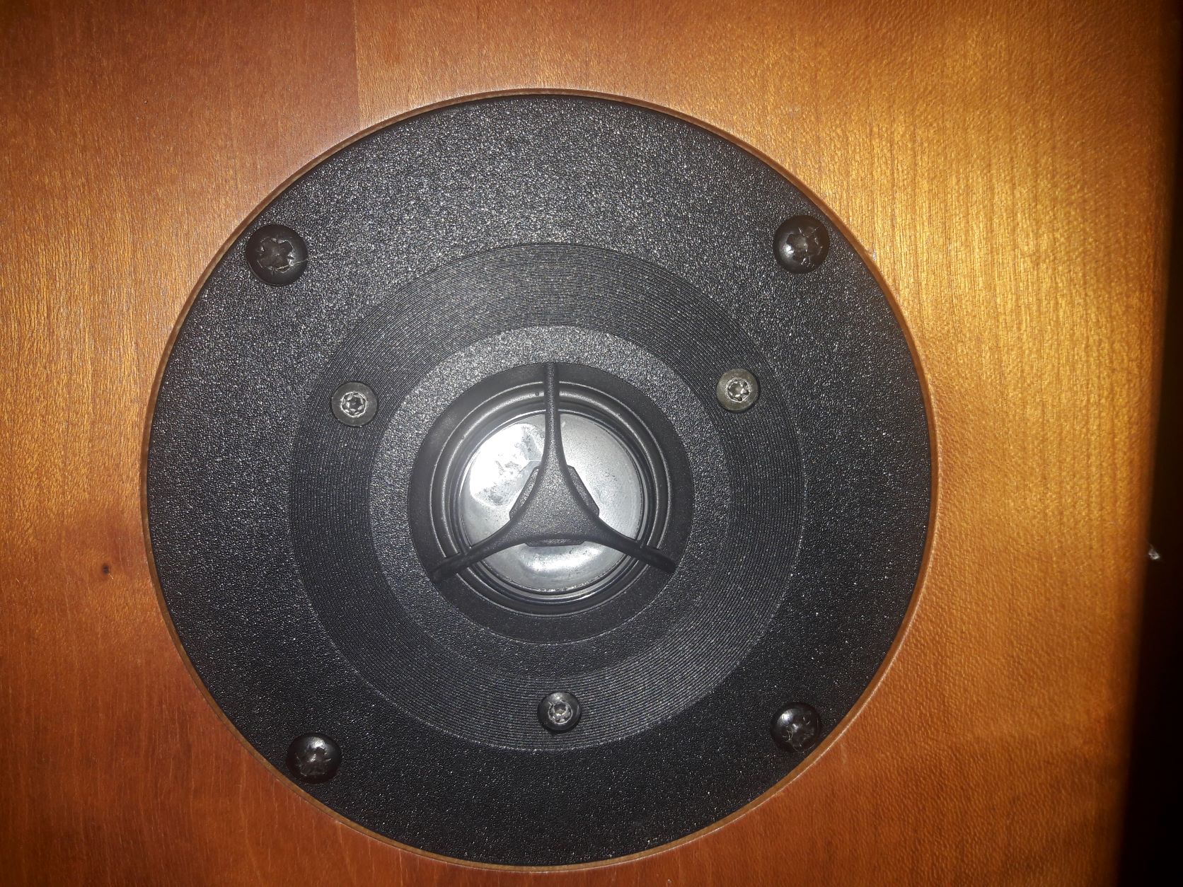 Не, это фронтальный динамик. За кошку говорят волоски шерсти прилипшие к покрытию динамиков. Колонки реально интересные. Электромеханическая часть уже в порядке. Прокол заклеен. Кроссовер не требует вмешательства. В принципе уже можно собрать и пробовать. Но я хочу сначала корпус подшаманить |