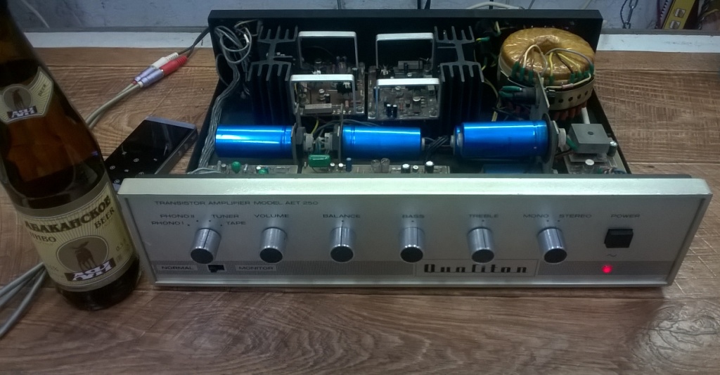 Пробег минимальный. Но с доработками. Вход "fono" теперь (судя по всему) выход на наушники. А кнопка его включения - переключатель АС-наушники. Кучка резисторов на земле пока непонятна мне (будем подумать). Что порадовало - работает. Фон в АС конечно присутствует, но не прям что бы очень. Год нашел только на двух советских конденсаторах - 70-й. |