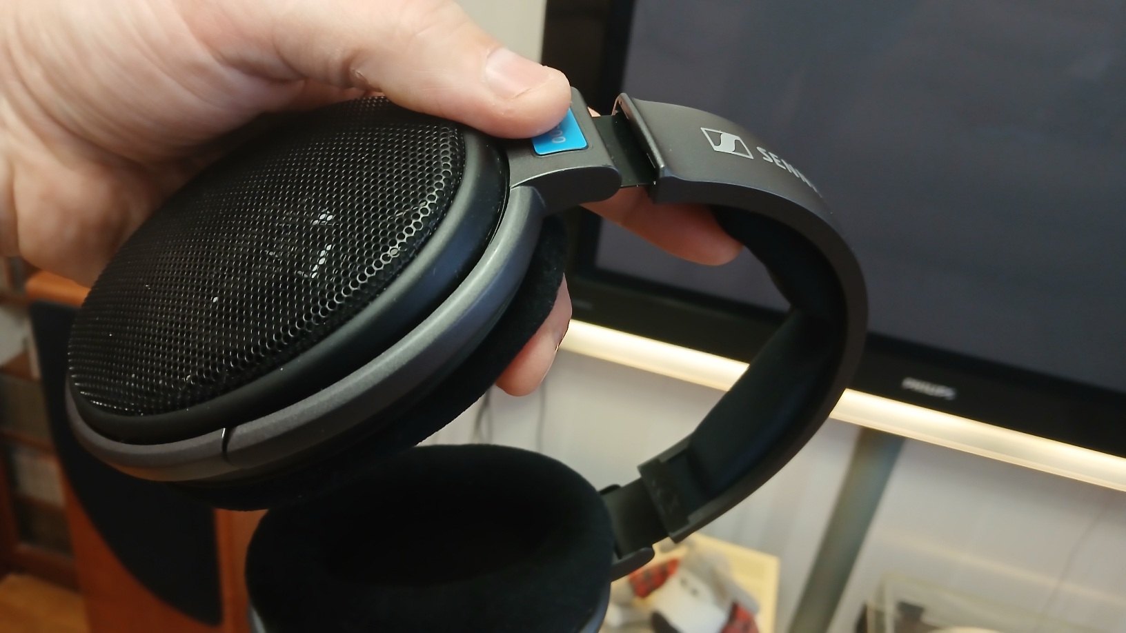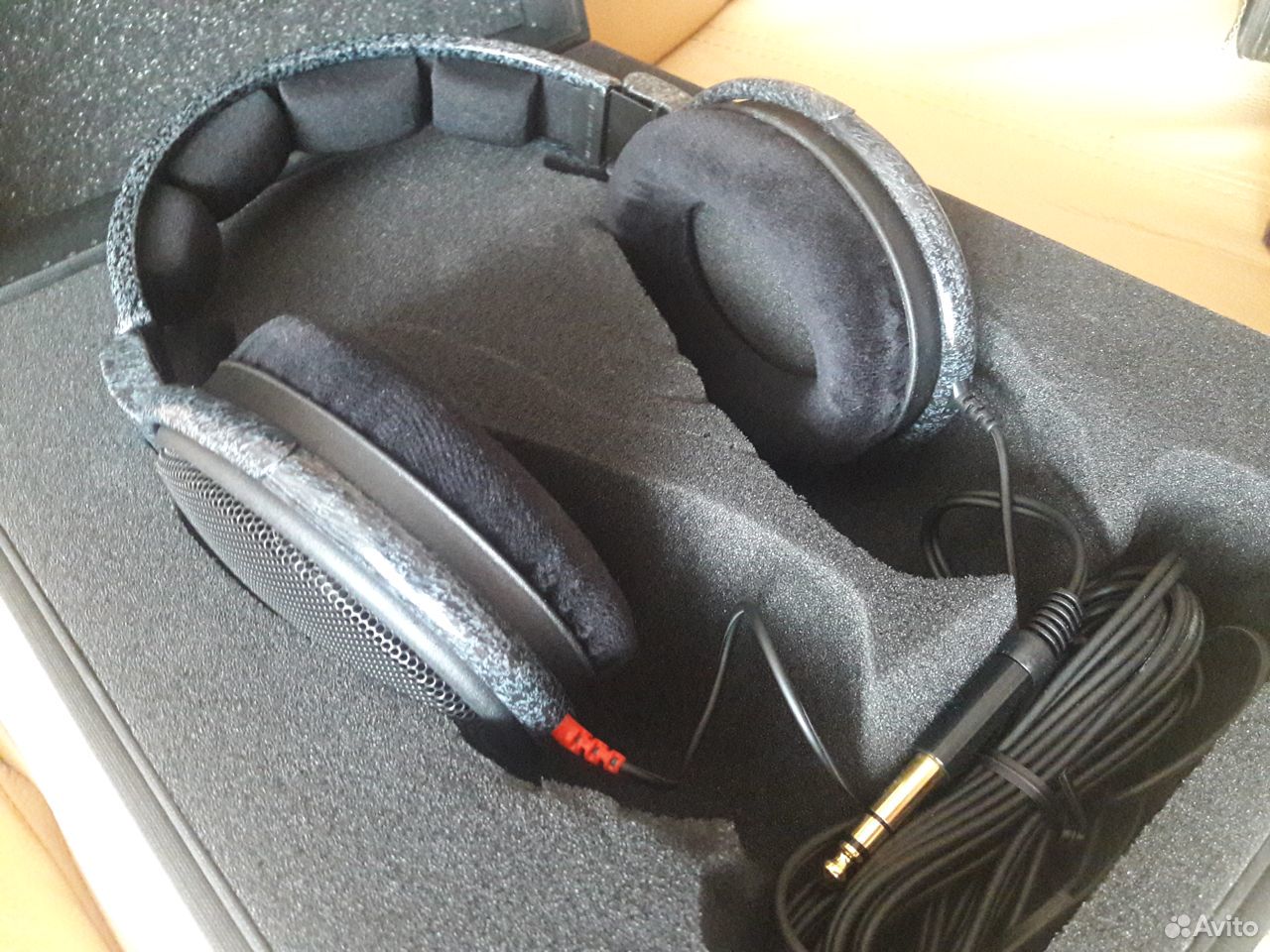 .Но выпускались недолго и мало, всего выпущено 300 штук. После чего флагманом стала гораздо более дешевая и простая HD 580. В 1996 её сменила HD 600 и она стала топовой моделью фирмы. И отношение к ней было, как к топу, пока не появились 650, 660, 700, 800 и тд и тп. У меня была версия 2001 года - двойная жесткая коробка с поролоновым вкладышем (можно использовать как кофр для хранения), глянцевый пластик с рисунком под мрамор, "зубастая" накладка оголовья