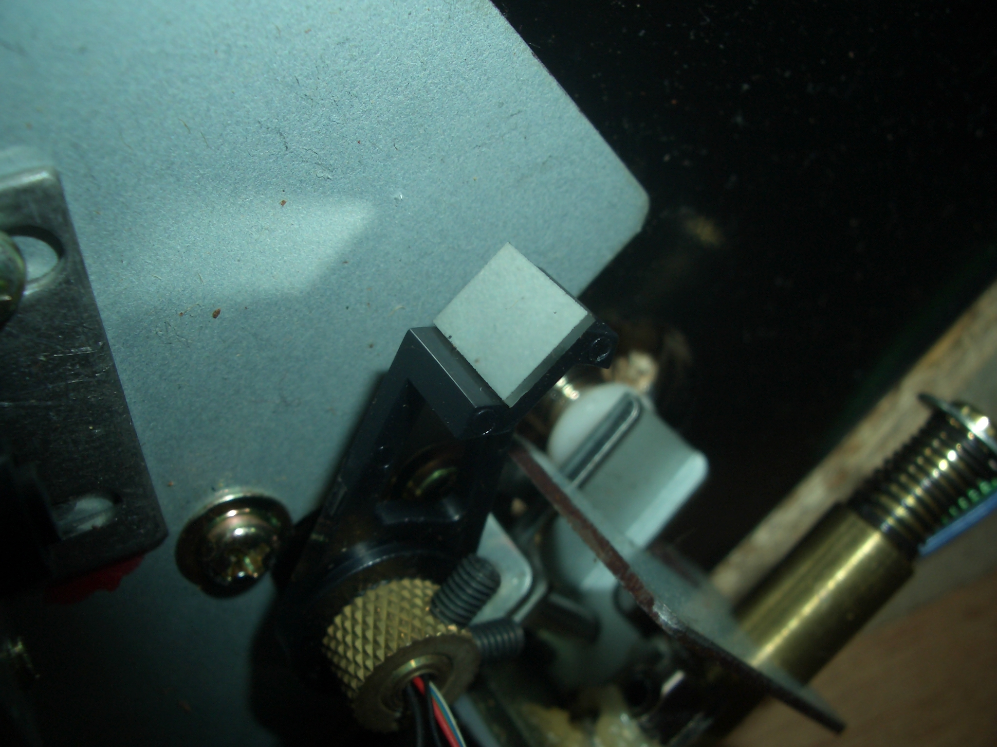 operator писал(а): А вот так решен узел автостопа - зеркало и оптопара. Вложение: CIMG0204.JPG вот одного винта точно не хватает, видимо просто сбита позиция останова.