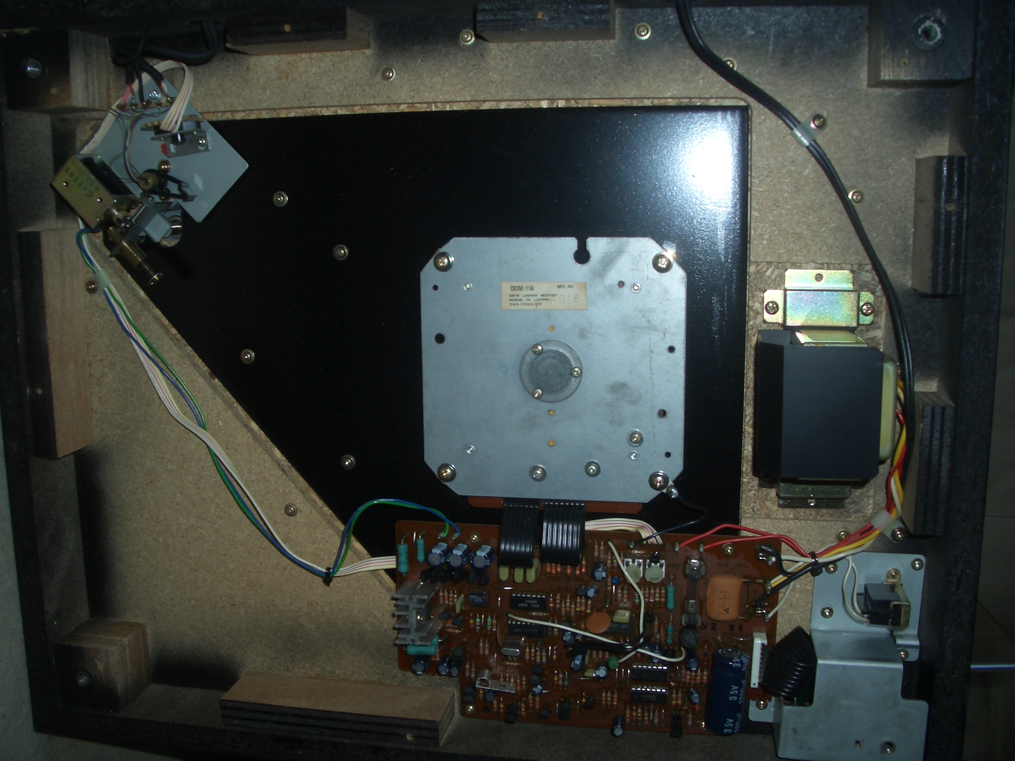 Унутре усё чисто, "дутиков" (кондёров) нет, но наверняка мелочь придется менять А вот так решен узел автостопа - зеркало и оптопара. Микролифт - соленоид с очень мягким вязким ходом