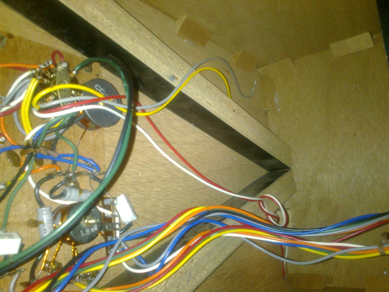 Пока проклеиваю стыки корпусов ПВА Моментом. Ну и снял все регуляторы и плату фильтра с переключателем. Все галетники открытого типа и имеют черненький цвет. Но, благо, можно не разбирая подлезть. Сначала нашатырным спиртом сниму черный налет с серебряных площадок контактов, потом немного ластиком почищу и смажу контакт-клинером на масляной основе. А там дело и до капаситоров дойдет. Кстати, провода промаркированы 1973 и 1974 годом, фирмы TACHII