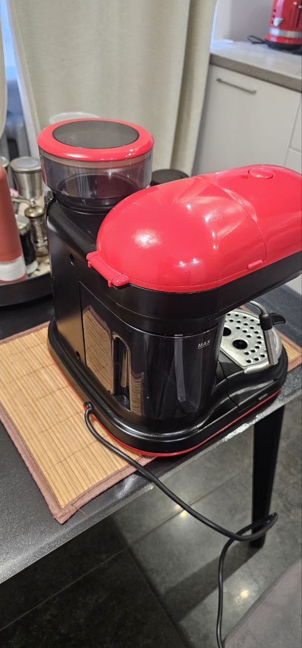 Модель отличается ретро-дизайном, наличием встроенной кофемолки и капучинатора.