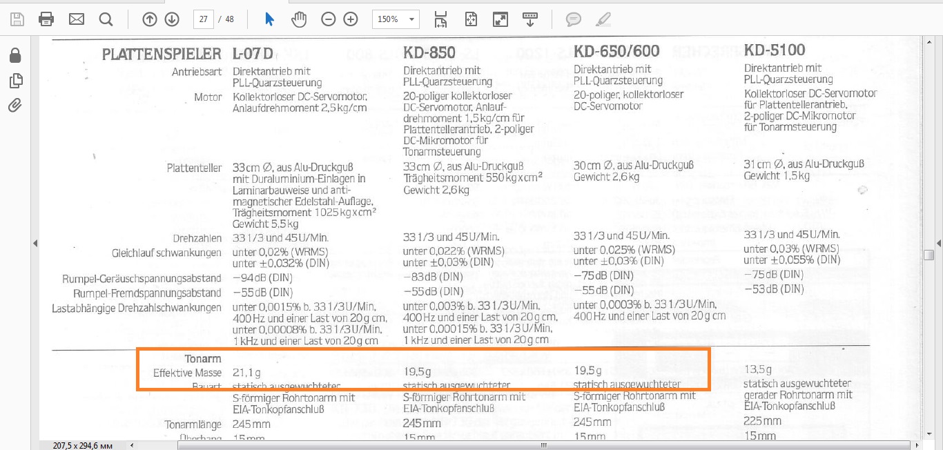 Denon DL-304 аж ложилась на пузо. Использовал её редко по этой причине.