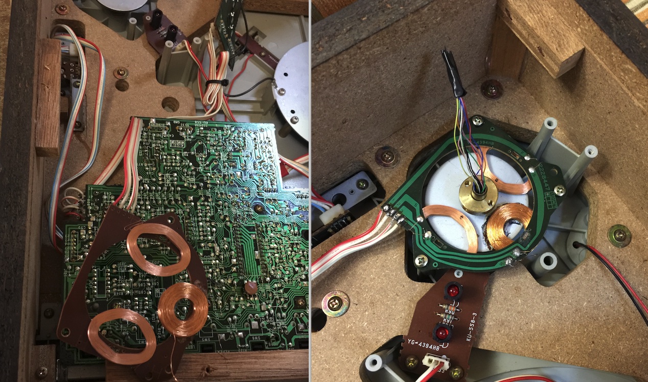 Чтобы на DL-59 можно было устанавливать помимо прямого тонарма S - образный (опционально) Denon пришлось сильно изменить схему, снабдив схему управления катушками двухтактными усилителями тока.