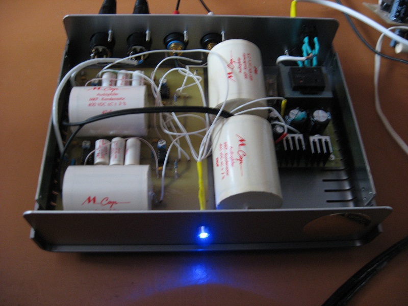 Если только мы хотим создать что-то интересное или нейтральное. Кроме правильной схемотехники мы должны выбирать чем "раскрашивать" звук. На этапе макетировани и начинается эта работа. На своих, проверенных, тестовых записях должны отслушиваться разные варианты деталюшек, а не два. Ну согласитесь же что красная Wima звучит везде одинаково. В тональности, которая сразу же бросается нам в уши, мы слышим похожий подчерк у разных, казалось бы корректоров. Условно говоря, если версия "baisic", то так и должно быть. Но если создатель набрался храбрости и заявил "LE", то там ведь должно же быть что-то особенное. Да потребителю плевать с высокой колокольни что вы там поставили на входе редкий транзистор! Только специалист, с тренированным слухом, на своих особых записях, возможно услышит это. А вот звук конденсатора или резистора стоящего на пути сигнала, в состоянии услышать любой, обращающий на это внимание, и имеющий достаточно "прозрачную" систему для этого. И вот, на этапе макетирования "LE", если Вам пришелся по звуку конденсатор фейерически большего типоразмера, то неужели вы проигнорируете это? Можете обозвать меня как угодно, но я бы, например, с уважением отнесся к человеку, который в погоне за истинной нейтральностью, в варианте "для себя любимого" ставит в корректирующую цепочку древний КПЕ от радиоприемника, и забавно предпринимает меры по его экранированию.