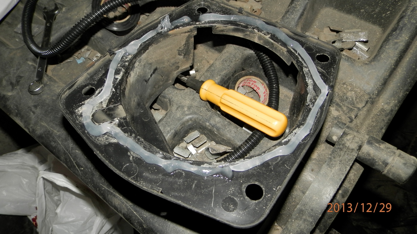 6 нанес силиконовый герметик между фанерой и влага-защищающей корзиной