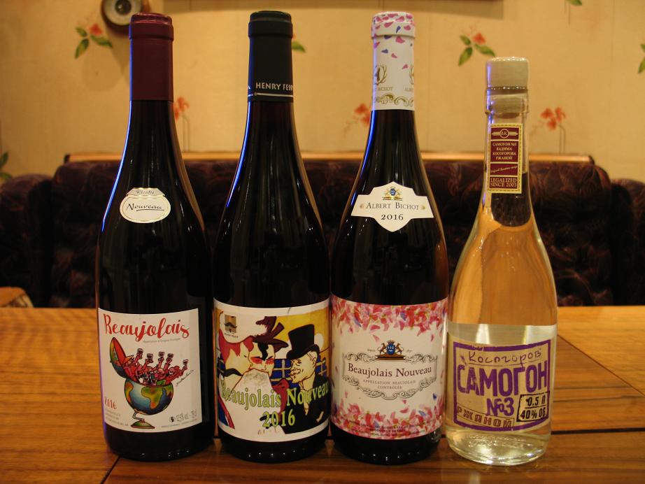 Завтра придут друзья, принесут свои бутылочки (надеюсь, что от других производителей) и мы все вместе встретим Новый Год, винный. Повторюсь, это очень простое вино, не надо ждать от него откровений. Это просто праздник. Он удачно расположен во времени – ноябрь у нас , пожалуй, самое мерзкое время: слякоть, дни становятся короче, впереди зима…. И божоле своим присутствием на столе прекрасно поднимает настроение. Даже этикетки, в нарушение всех канонов французского виноделия, весёлые и красочные.