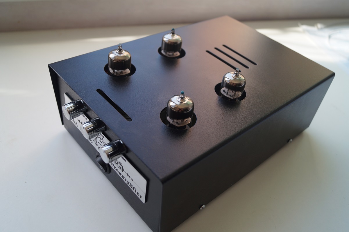 Построен на четырех лампах 6Н3П, по схеме известного разработчика корректоров Василича. Есть отключаемая подсветка ламп. Имеется регулировка громкости - работает как пред, можно включить непосредственно в усилитель мощности. Очень качественно сделан, массивный корпус заводского изготовления, все надписи выгравированы на толстых металлических пластинах. Довольно габаритный - ширина 17, глубина 28, высота 11.5 см. 16 т.р. Отправка без проблем.