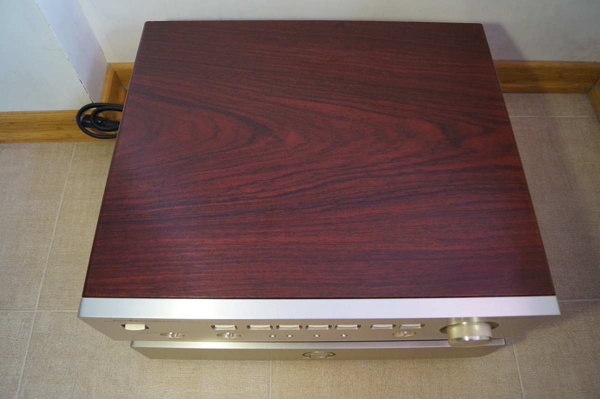 Роскошная двойка предварительного усиления и усиления мощности в цвете шампань. Имеют балансное XLR подключение, полное двойное моно, даже трансформаторы у каждого компонента отдельные на каждый канал. У мощника очень большая энерговооруженность, батарея конденсаторов 40 000 мкф на канал.